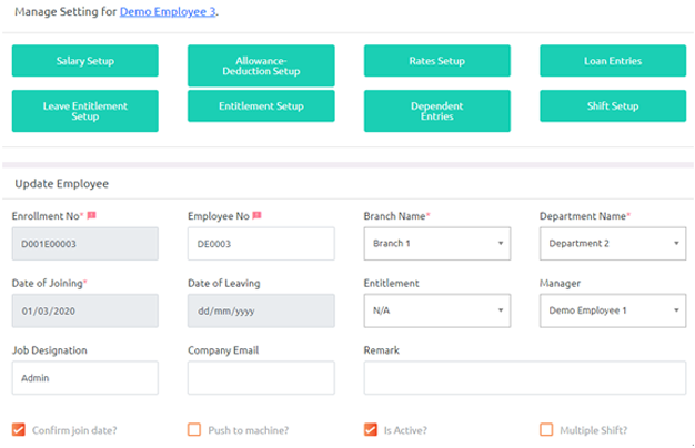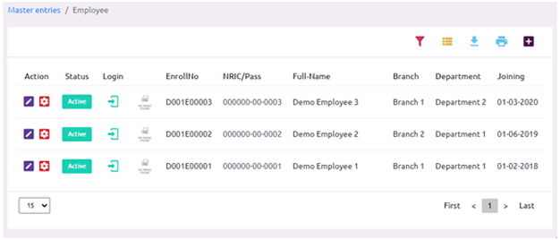 Employee List; Easy management of new & resigned employees, set monthly fixed allowance & deduction, leave entitlement, customise rate for overtime etc and keep track loan given to the employee.